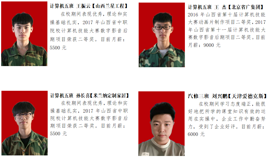 我校自创办以来,在十一年的时间里,凭借科学规范的管理、敬业奉献的教师团队、踏实进取的学风、培养了一大批优秀的毕业生。如今,桐封学子的足迹已经遍布全国各地各行各业。他们在自己的工作岗位上用过硬的专业技术为自己为学校和企业争得荣誉。